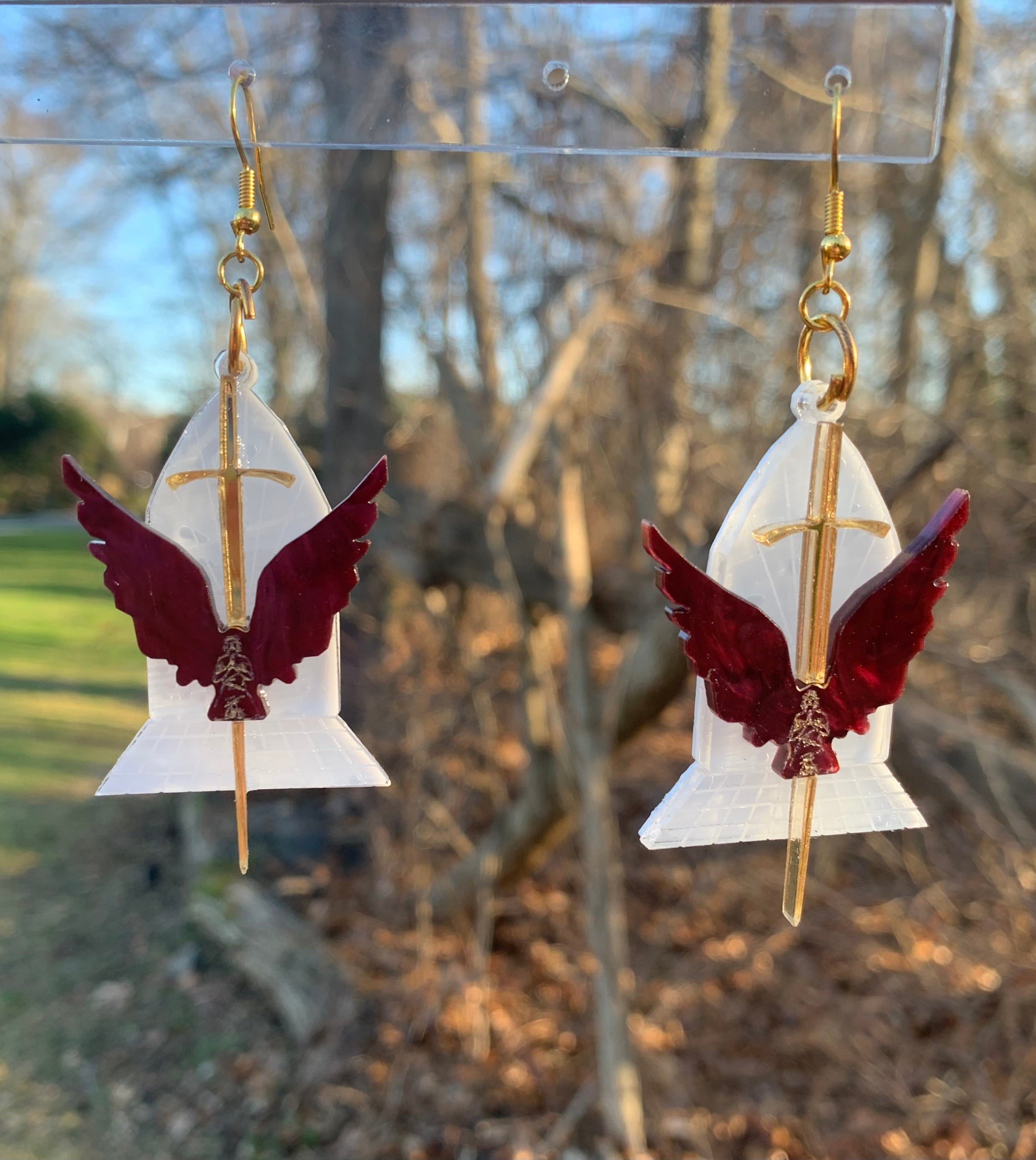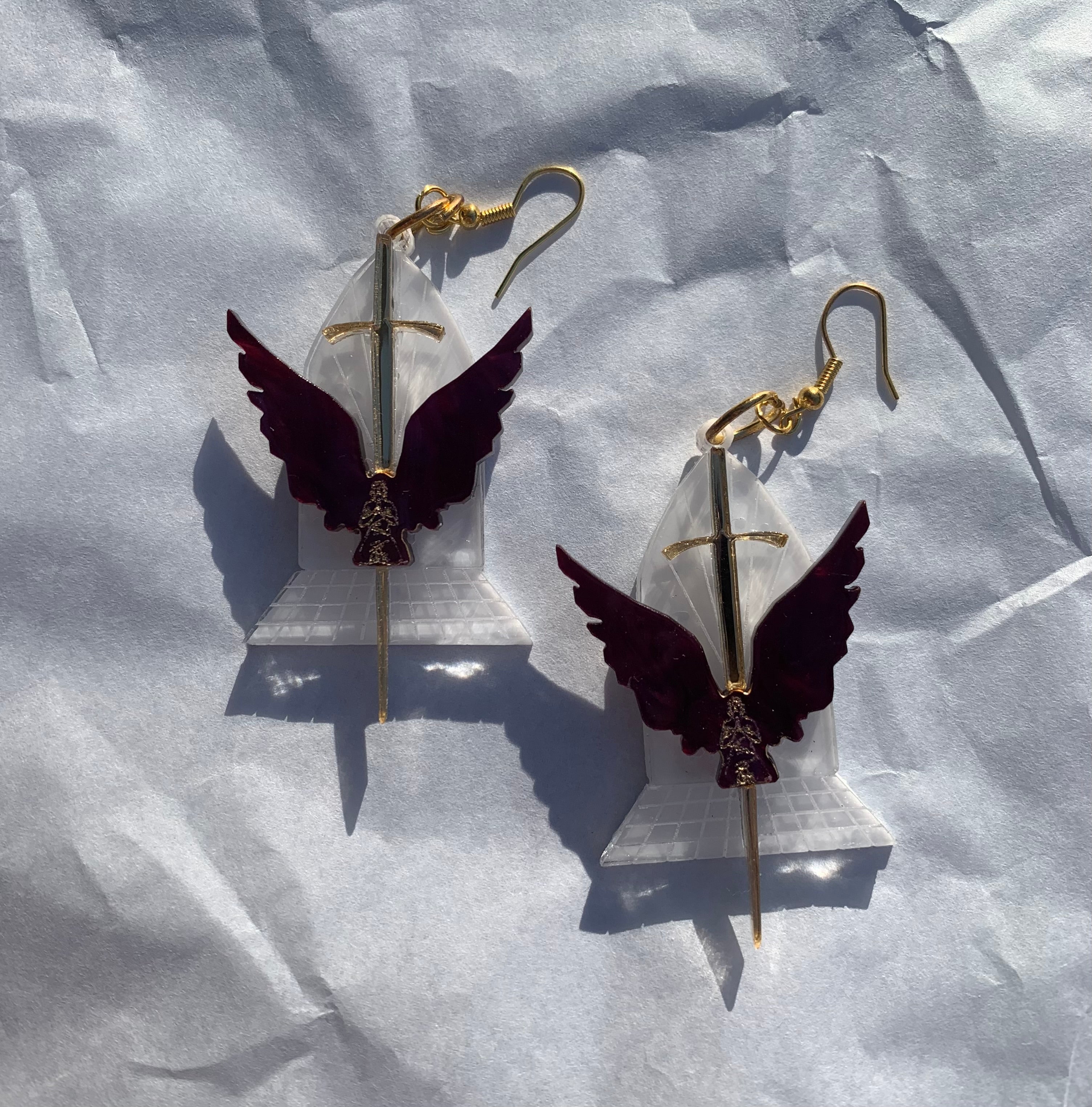 ‘Take Me To Church’ was one of the first Hozier songs I ever heard. It was incredibly cathartic listing to this song in high school and feeling seen through music. I chose the clear and white colors for the cathedral arch because the song to me is less about the church and more about the individual affected by it! That’s what the center of the piece is the figure, being pierced by the gold sword. The wings represent the goodness and ferocity in us all!