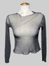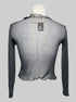 XL black and silver metallic mesh long sleeve blouse with lettuce trim