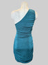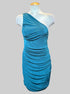 XL Body con blue one shoulder dress with lots of ruching and draping