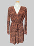 XL Brown and orange faux wrap dress with tie and elastic waistband