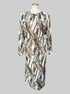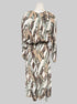 XL Brown white and green multi pattern flowy dress with elastic waistband and keyhole back