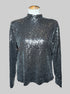 XL Eloquii black long sleeve top with sequins, mock neck, and zipper on back