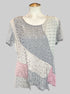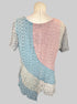 XL Flowy blue, grey, and pink color block blouse with floral embroidery