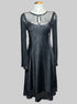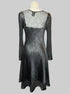 XL Komarov black dress with crinkle texture and sheer sleeves and chest