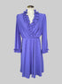 XL Lorac Original vintage purple puffed shoulder, long sleeve midi dress with ruffled v-neck and sleeve cuff detail