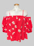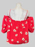 XL Pink off the shoulder top with white and brown florals, elastic waistband around chest, and balloon sleeves