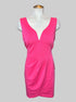 XL pink sleeveless dress with V-neck, cut, pleated faux wrap design on front, and zipper on back