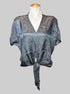 XL vintage black, short sleeve top with floral burnout, design, and tie on front