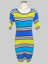 XS Green, blue, black, and white striped body con dress